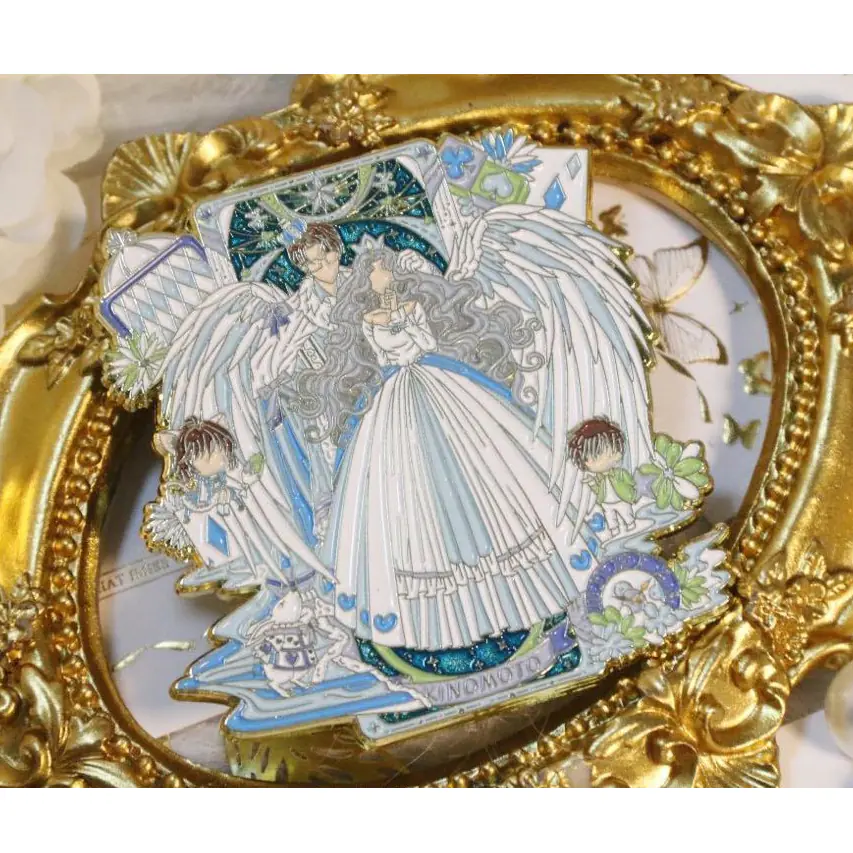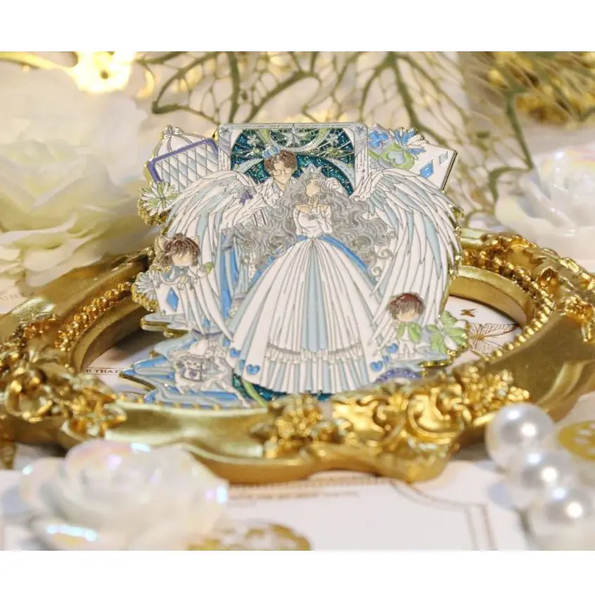 Celebrate the bond of a loving magical family with this intricately designed metal brooch. Featuring a gentle prince with graceful wings and a princess in an elegant white gown, this piece captures a moment of royal warmth and enchantment. Perfect for those who believe in fairy tales that last forever.